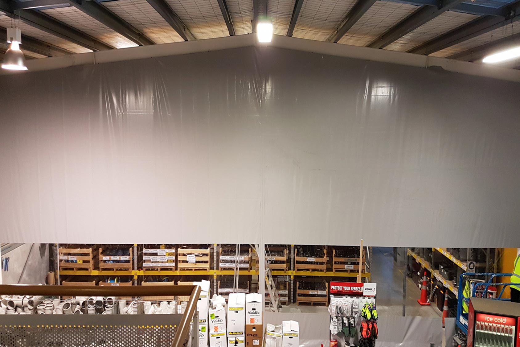 Maximising your industrial space is easy. Supershield is the premium choice for almost instant segregation of diverse or specialist activity areas. The unique design utilises existing framework and is tensioned to the floor, removing the need for any further framework or time-consuming construction consent process. This design enables perfect fit around any protrusion. Installation is a fast clean process with minimal disruption and contamination risk.